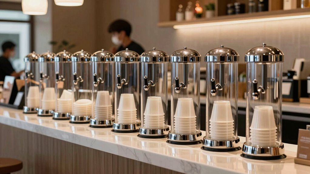 Cup dispensers greatly boost customer service efficiency by allowing customers to easily grab cups without waiting or causing congestion. I’ve noticed that a well-organized dispenser speeds up the process, minimizes messes, and keeps the flow smooth during busy hours. When customers can quickly access what they need, they’re happier, and I can serve more people promptly. It’s a simple upgrade that makes a big difference in the overall café experience.